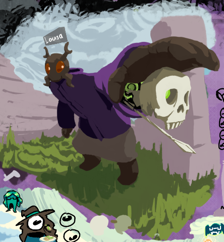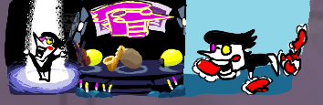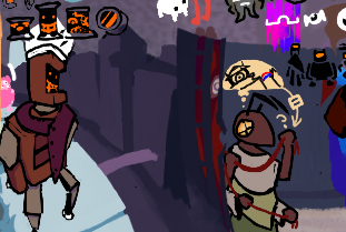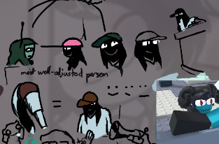 May 19th. small ongoing thought process of silly crossover of Brutal Orchestra freaklets in Look Outside. they would probably not keep the others masks since Hans uses her mask for covering front purposes and shadow for eyehole purposes.